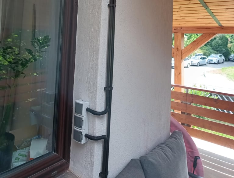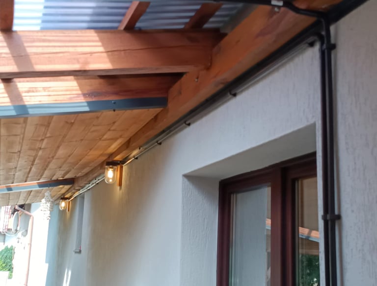 Oświetlenie i gniazda na werandzie, wykonane z materiałów odpornych na warunki atmosferyczne
