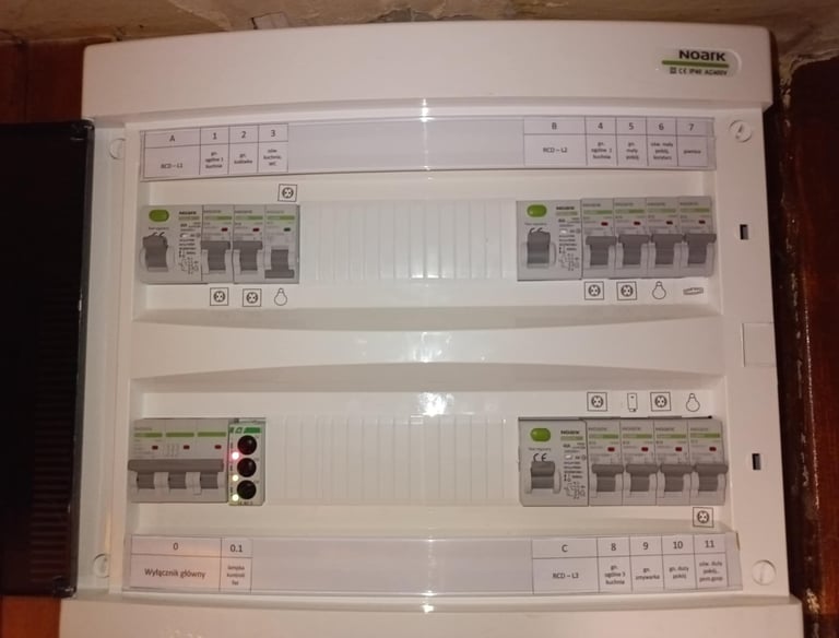 Złożone rozdzielnice po wymianach instalacji. U mnie zawsze otrzymujesz opisane rozdzielnice ze schematami, pomiarami i protokołem
